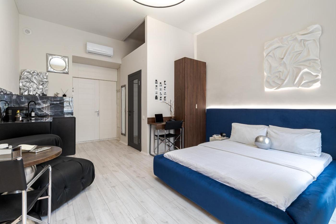 Superior Apartment. The air-conditioned apartment has 1 bedroom and 1 bathroom with a walk-in shower and a hairdryer. A kitchen fitted with a stovetop, a refrigerator and a microwave is available for cooking and storing food. The apartment features a washing machine, a tea and coffee maker, a wardrobe, a flat-screen TV with streaming services, as well as city views. The unit has 1 bed.